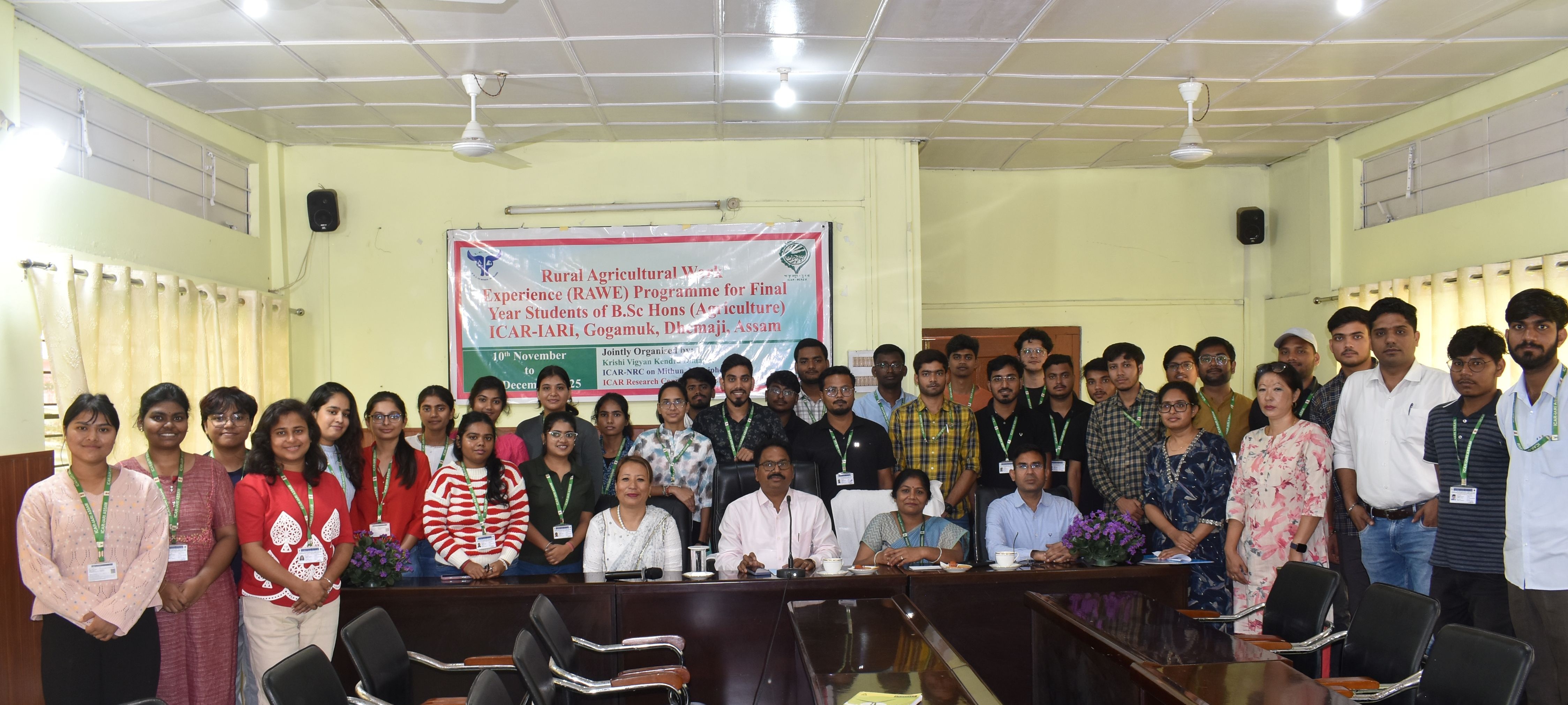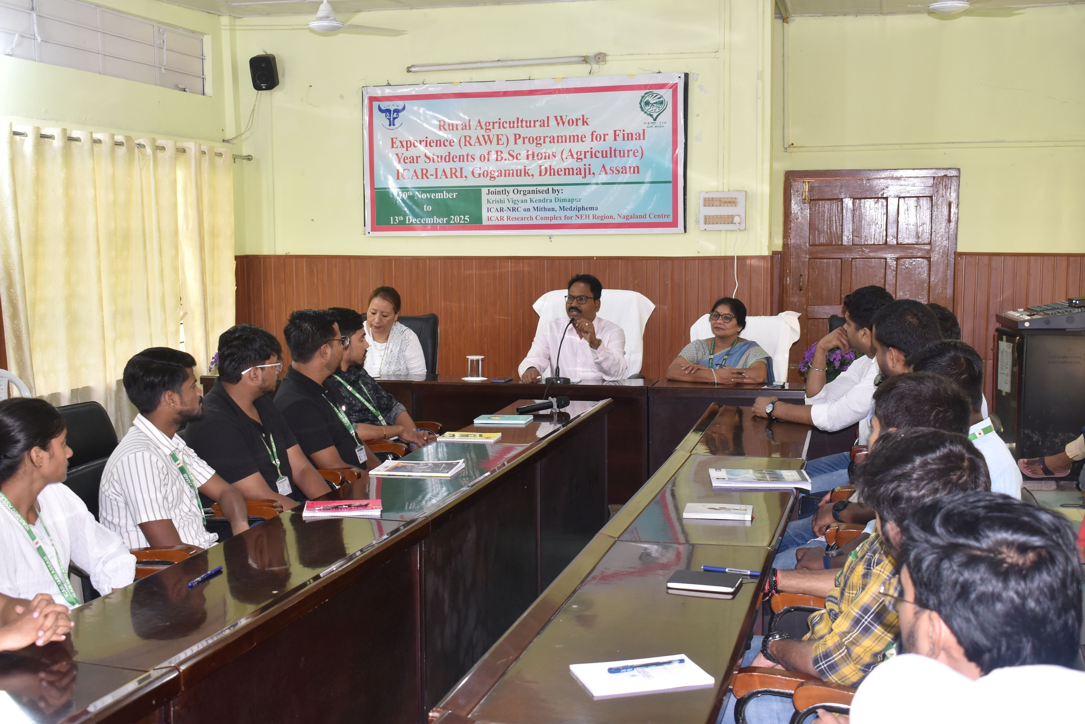 The Rural Agricultural Work Experience (RAWE) Programme for thirty-two B.Sc. (Agriculture) students from the ICAR-Indian Agricultural Research Institute (IARI), Assam Campus was inaugurated on 12th November 2025 at the Conference Hall of ICAR–Krishi Vigyan Kendra (KVK), Dimapur. This programme forms a part of the Institutional Attachment Module and is being jointly organized by ICAR-KVK Dimapur, ICAR-Research Complex for NEH Region, Nagaland Centre, and the ICAR–National Research Centre on Mithun (NRCM).